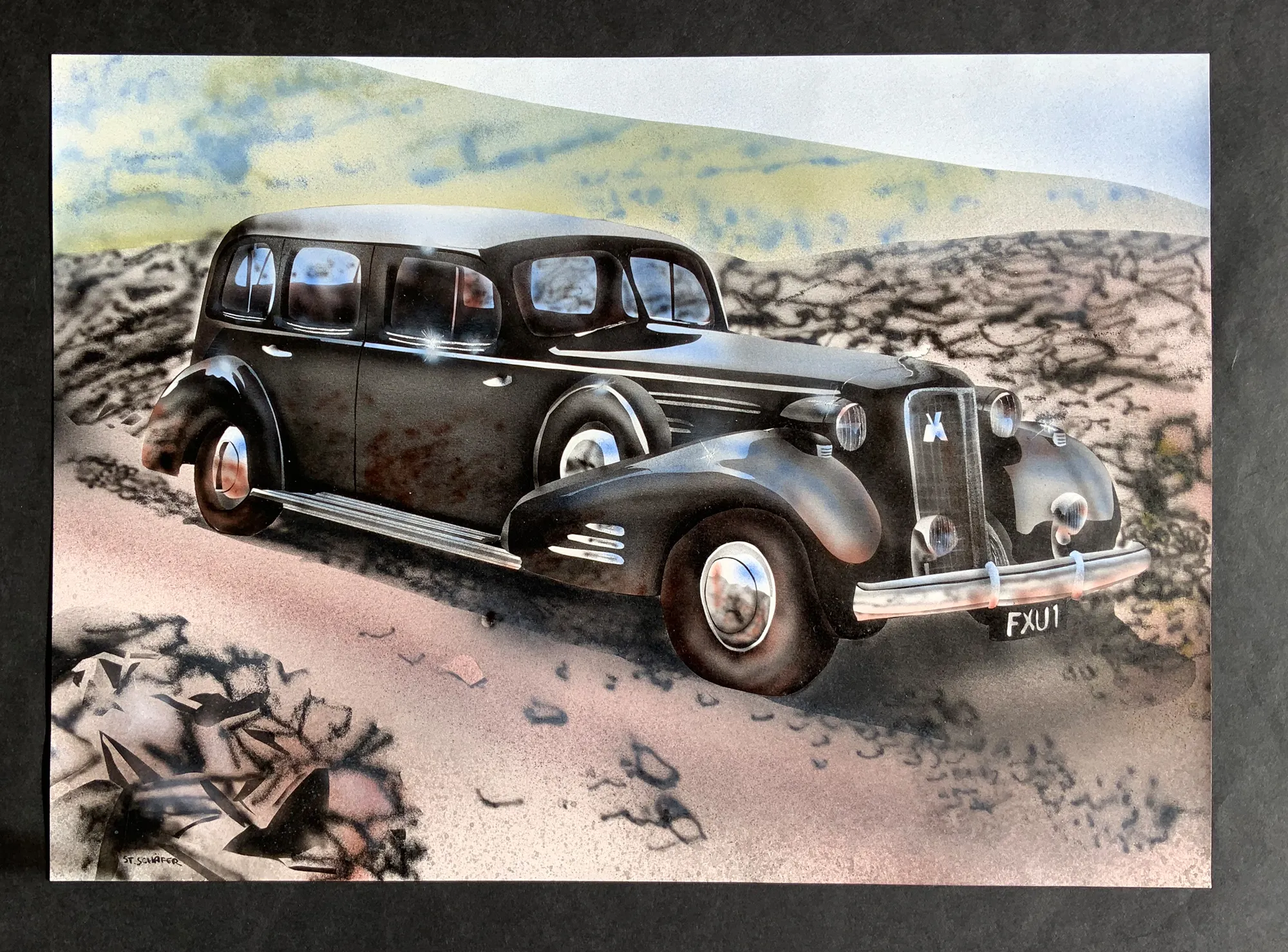 Was man heute in Photoshop, Illustrator, Fresco & co. erstellt, hat man früher mühsam mit Spritzpistolen, Pinseln, Rubber Gum, Folien etc. realisiert. Die Nutzung der Folienmasken vom Airbrush sind heute Masken in Photoshop. Auch wenn die Airbrush-Werke etwas älter sind, möchte ich ihnen hier eine Plattform geben. Licht, Komposition, Umsetzung sind immer noch fein. Das Erarbeiten und die Umsetzung lehrt das Bewusstsein über Licht und Formen.